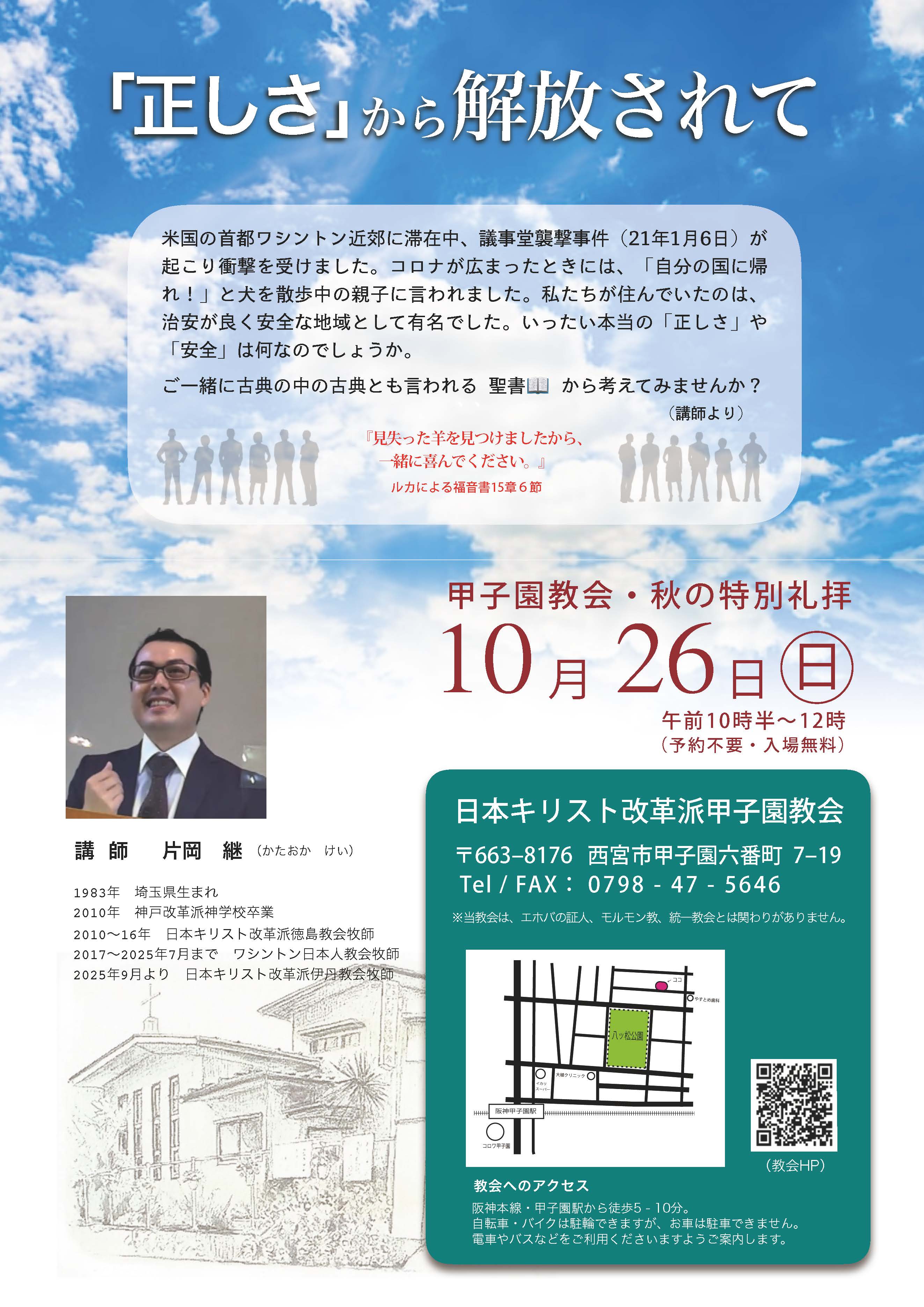 【甲子園教会・秋の特別礼拝】(入場無料・予約不要)