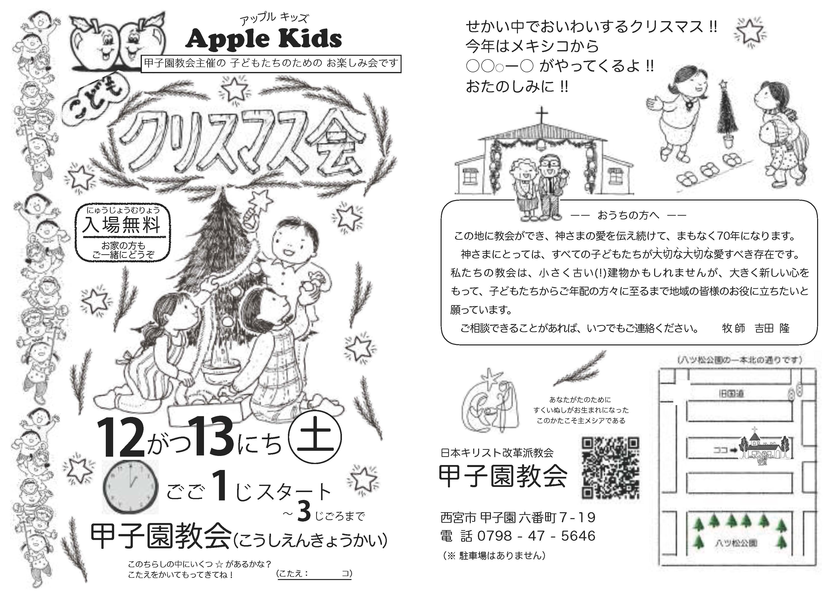 【甲子園教会のアップルキッズ】(入場無料・予約不要)